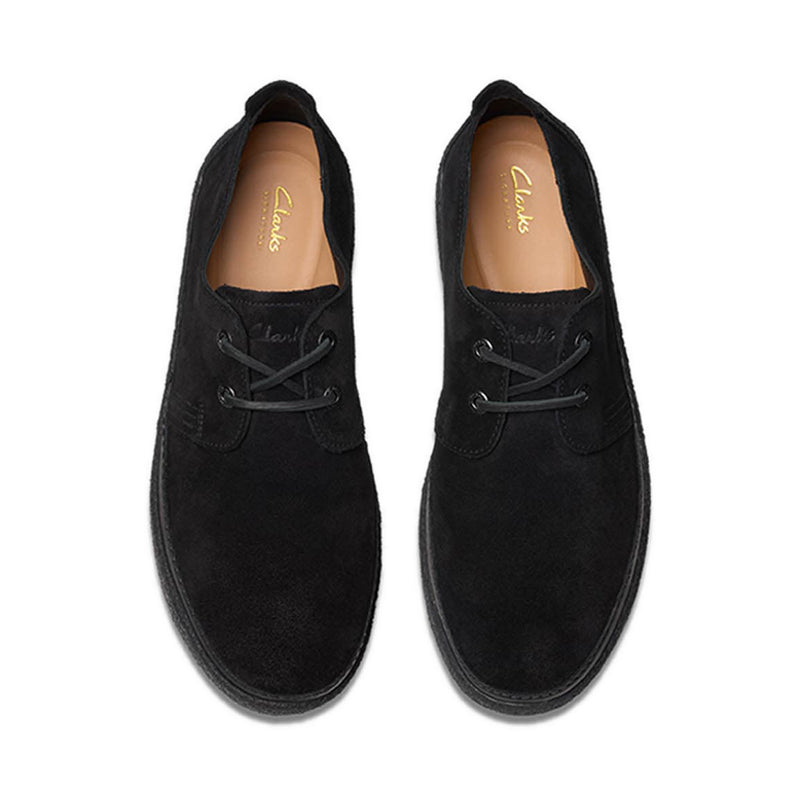 Clarkwood Low is our modernised, pared-back interpretation of Desert Trek. With all the classic features minus the centre seam detail, its side-stitch natural rand and Tor branding take style cues from our icon, while suede uppers in timeless black balance the pebble crepe-effect sole perfectly.<...